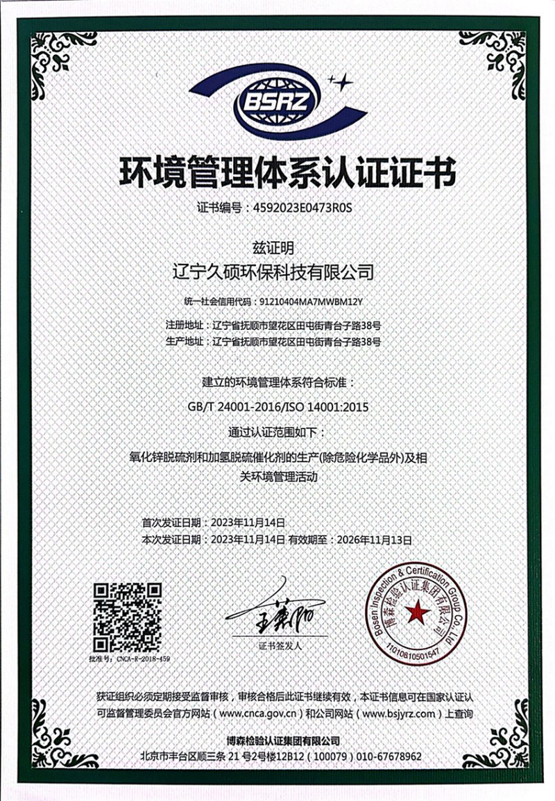 環(huán)境管理體系認(rèn)證證書