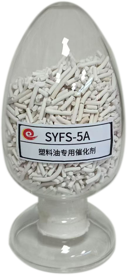 我公司針對廢塑料煉制柴油的項目,研制出一種廢塑料油專用催化劑,型號為SYFS-5A   SYFS-5B。該催化劑能明顯地提高出油的質量。而且對產物柴油的選擇性高,蒸餾后,油成淡黃色,密度能達到0.79-0.82,臭味基本消除(因其對塑料中的添加劑也進行了裂解處理)。十六烷值、辛烷值高,裂解氣中C2干氣很少,液體收率在90%以上; 還具有降凝功效(凝點可控制在0--20℃)。